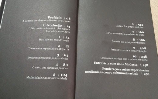 Temos ainda um capítulo dedicado ao Irmão Ferreira e outro sobre os tipos de defesa nos serviços com o submundo astral, além de uma entrevista com Dona Modesta.