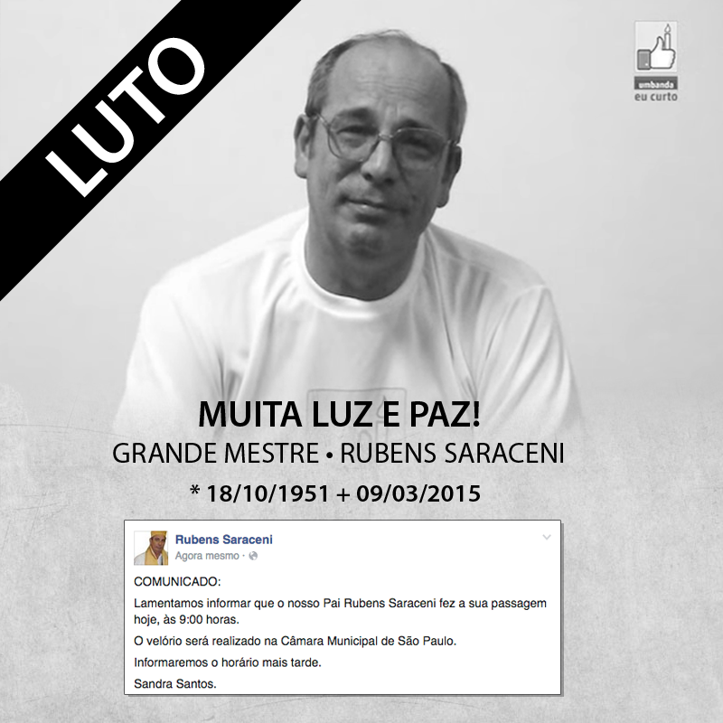 É com grande pesar que informamos o desencarne do Pai Rubens Saraceni, sacerdote e escritor umbandista, mago iniciado e fundador do Colégio de Umbanda Sagrada Pai Benedito de Aruanda.